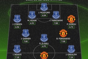 whoscored列埃弗頓曼聯(lián)評(píng)分合體陣:紅魔僅姆伯莫、B費(fèi)、多爾古