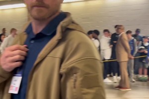 擊敗火箭后,弗拉格為等候在通道內的球迷們簽名!