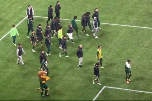 博主“斯文已逝”寫道:國安賽后謝場環(huán)節(jié)應(yīng)該是有人提前回更衣室了,頂著全場噓聲和“丟人現(xiàn)眼”的喊聲走了一圈,另一邊海牛功臣薩里奇獲得大片掌聲。