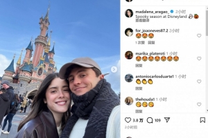 瑪達(dá)萊娜與內(nèi)維斯一起來到迪士尼樂園游玩,瑪達(dá)萊娜社媒曬出照片,配文:“迪士尼樂園萬圣季?!?/p>