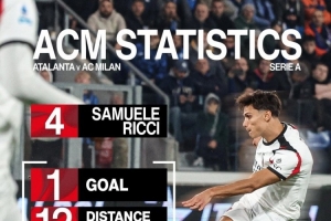 米蘭官方社媒曬出里奇本場比賽的數(shù)據(jù),他出場97分鐘打進(jìn)1球,跑動(dòng)距離12公里,傳球成功率97%,完成4次解圍。