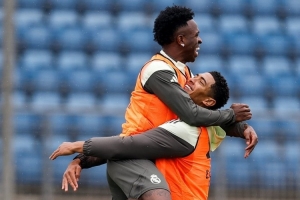 體育資訊10月29日訊 在經(jīng)歷了國(guó)家德比一系列爭(zhēng)議風(fēng)波后,皇馬陣中的氣氛似乎已經(jīng)重新回歸平靜。今日,皇家馬德里官方社交媒體曬出球隊(duì)訓(xùn)練照,畫(huà)面中維尼修斯與貝林厄姆緊緊相擁,兩人笑容滿(mǎn)面,顯得氣氛融洽。