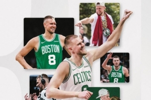 凱爾特人官方曬圖致謝波爾津吉斯和霍勒迪道:“永遠的凱爾特人冠軍????, 感謝你們所做的一切?!?/p>