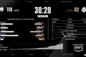 體育資訊10月30日訊 S15八強(qiáng)TES首局擊敗G2,JKL韋魯斯首局打出了38.9W的傷害。
