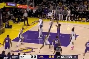 嗖的一下就起來(lái)了!阿門(mén)變向突破鉆人縫 直接雙手暴扣!
