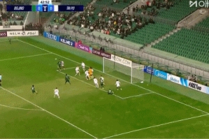比賽第43分鐘,王剛在禁區(qū)外貢獻(xiàn)了一腳離譜的凌空抽射,皮球直接高高飛出轉(zhuǎn)播畫面,5秒之后才落到了看臺(tái)上。