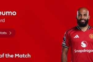 本場比賽曼聯(lián)前鋒姆伯莫發(fā)揮出色,打進(jìn)球隊首粒進(jìn)球,賽后他也當(dāng)選英超官方球迷票選全場最佳球員。