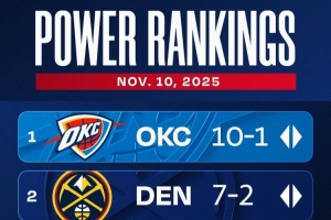 體育資訊11月11日訊 官方發(fā)布了最新一期球隊實力榜,其中前兩名沒有變化,依舊是雷霆和掘金。而火箭升至了第三位,尼克斯也升到了第四位。
