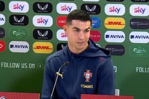 體育資訊11月13日訊 葡萄牙對陣愛爾蘭的賽前,C羅出席發(fā)布會接受采訪。