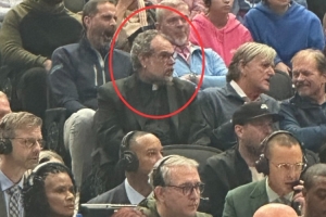 據(jù)隨隊記者Nick Angstadt報道,觀眾席上哈里森原來的座位上今天坐著一位牧師。