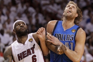 2011年,詹姆斯轉(zhuǎn)投熱火后與小牛在總決賽相遇,雙方大戰(zhàn)6場(chǎng),熱火2-4丟冠。