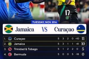 體育資訊11月14日訊 北美預(yù)選第三階段第5輪, 庫(kù)拉索客場(chǎng)7-0狂勝百慕大群島,牙買(mǎi)加客場(chǎng)1-1遭特立尼達(dá)和多巴哥絕平。