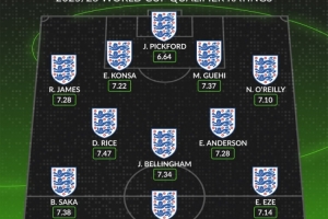 WhoScored英格蘭世預(yù)賽評(píng)分最高陣:凱恩、賴斯、薩卡分列前三