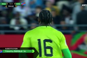 此役兩隊(duì)在常規(guī)時(shí)間120分鐘內(nèi)打成1-1平,民主剛果專門換門將迎接點(diǎn)球大戰(zhàn),法尤魯替補(bǔ)登場(chǎng)。