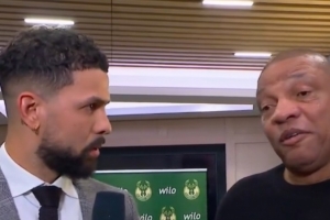 體育資訊11月18日訊 今日對(duì)陣騎士的賽前,奧斯汀·里弗斯作為記者采訪了自己的爸爸、雄鹿主帥道格·里弗斯。