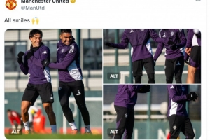 傷勢無礙!曼聯(lián)社媒曬今日訓(xùn)練照片,庫尼亞在列+露出笑容