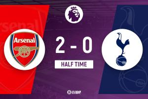 半場(chǎng)-阿森納5分鐘2球暫2-0熱刺 特羅薩德&埃澤破門(mén)梅里諾挑傳助攻