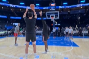 外線手感不錯!楊瀚森賽前熱身 弧頂三分4次出手全部精準入筐