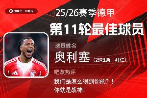 第十一輪評(píng)選結(jié)果結(jié)出爐,奧利塞2射3傳超神表現(xiàn),幫助拜仁讓2追6擊敗弗萊堡,獲得吧友超4.2萬(wàn)票支持。奧利塞毫無(wú)懸念當(dāng)選【體育資訊X小紅書德甲第11輪最佳球員】!