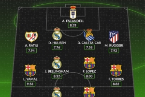 whoscored西甲本輪最佳陣:亞馬爾、貝林領(lǐng)銜,巴薩4將、皇馬3人