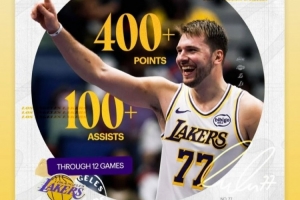 開(kāi)賽季12戰(zhàn)達(dá)成至少400分100助攻歷史首人 東契奇本人轉(zhuǎn)發(fā)