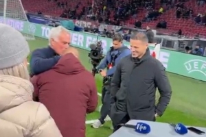 昔日師徒!穆帥歐冠賽前與斯內(nèi)德?lián)肀Ш?/p>