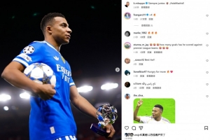 本場比賽姆巴佩上演大四喜,賽后他也在社媒曬出拿走比賽用球和全場最佳獎杯的照片,配文寫道:“永遠團結(jié)一致,皇馬加油!”