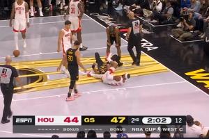 阿門這個犯規(guī)打到理查德面部被升級為一級惡犯