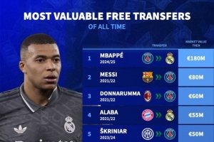 體育資訊11月29日訊 德國轉(zhuǎn)會(huì)市場列出了自由轉(zhuǎn)會(huì)球員身價(jià)排名,姆巴佩1.8億歐居首,梅西8000萬歐次席。