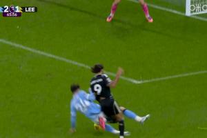 體育資訊11月30日訊 曼城vs利茲聯(lián)第66分鐘,格瓦迪奧爾飛鏟直接放倒了勒溫,裁判判罰點球,外加黃牌一張!恩梅查點射沒進,但是補射進了。此時比分變?yōu)槁?-2利茲聯(lián)。