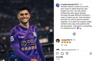 體育資訊12月1日訊 2025中超聯(lián)賽已落下帷幕,最終天津津門虎排在聯(lián)賽第6位。津門虎外援薩爾瓦多在社媒發(fā)文,對(duì)賽季進(jìn)行總結(jié)。