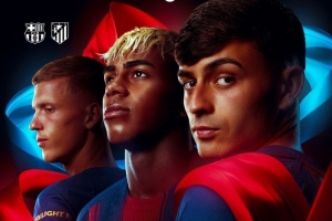 巴薩官方社媒發(fā)布了為此役制作的海報,亞馬爾、佩德里、奧爾莫出鏡。