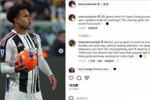 麥肯尼寫道:“在這里的200場(chǎng)比賽!!這段旅程很漫長(zhǎng),但我不會(huì)用任何東西去交換!這家俱樂(lè)部給了我太多!Forza Juve??!”