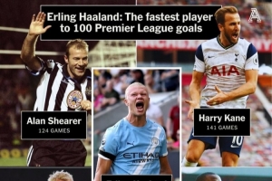 據(jù)The Athletic數(shù)據(jù)統(tǒng)計(jì),哈蘭德打進(jìn)英超百球用了111場(chǎng)比賽,達(dá)成這一里程碑的速度要比任何球員都快。