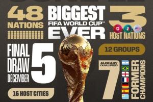 2026世界杯抽簽將于12月06日星期六01:00進(jìn)行,為預(yù)熱抽簽儀式,世界杯官推曬海報(bào)盤(pán)點(diǎn)本屆世界杯的數(shù)據(jù):