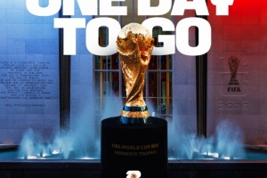 世界杯官方社媒曬出倒計時一天海報,預熱世界杯抽簽儀式,大力神杯出鏡。