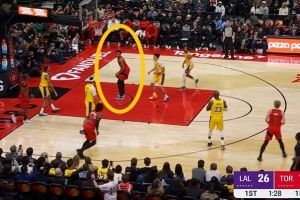 GIF-斯科蒂·巴恩斯籃下接球 先回頭看一下拉拉維亞 然后扣空籃命中