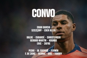 前鋒:費(fèi)蘭·托雷斯、萊萬(wàn)、亞馬爾、拉菲尼亞、拉什福德、巴德吉