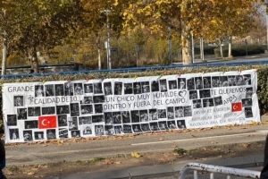 球迷在皇馬訓(xùn)練場外懸掛橫幅,表達(dá)對(duì)居萊爾的支持: