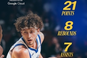 賽后,勇士官方曬出波杰姆斯基的數(shù)據(jù)海報(bào),將其評選為本場最佳球員。