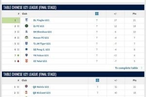 中國足球青少年精英聯(lián)賽(U21組)落幕,大連英博全勝奪冠并獲得升乙附加賽參賽資格。第2-16名分別為浙江、上海申花、河南、天津津門虎、深圳新鵬城、云南玉昆、長春亞泰、青島海牛、青島西海岸、北京國安、梅州客家、蘭州隴原競技、江西廬山、廣西平果、昆明城市。 ????