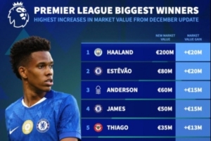 體育資訊12月9日訊 德轉(zhuǎn)更新英超球員身價(jià),哈蘭德、埃斯特旺身價(jià)均+2000萬歐,為本次身價(jià)上漲最多的英超球員。