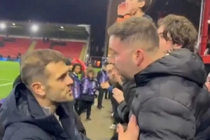 威爾希爾當(dāng)時正走向客隊球迷看臺,為隨隊出征的球迷們的支持鼓掌致謝。他隨后走向一位球迷與之握手,而旁邊的一位球迷則表達了批評意見。