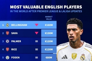 體育資訊12月12日訊 德國轉(zhuǎn)會市場更新了英超、西甲球員的身價,并列出英格蘭球員身價排名,貝林厄姆1.6億歐居首。