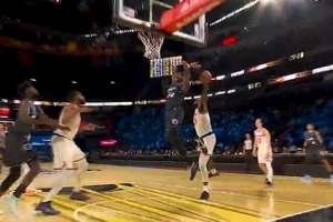 太殘暴了狀元熱門迪班薩海底撈月 隔著對(duì)手完成炸裂單手補(bǔ)扣