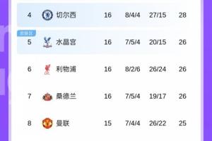 英超15輪過(guò)后,曼聯(lián)7勝4平4負(fù)積25分排在第8位。本場(chǎng)如果能贏球,曼聯(lián)將升至英超第5。