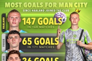 體育資訊12月15日訊 自從哈蘭德加盟曼城以來,他的恐怖進球效率已經(jīng)不斷刷新多項紀錄。據(jù)score90數(shù)據(jù)統(tǒng)計,2022年夏天,自哈蘭德加盟曼城以來,球隊的射手榜單中,哈蘭德本人以168場打進147球斷層領(lǐng)跑,福登以171場打進65球排名第二。