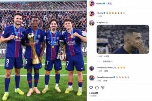 體育資訊12月18日訊 巴黎在洲際杯決賽點球擊敗弗拉門戈,維蒂尼亞首發(fā)踢滿120分鐘并當選為全場MVP。