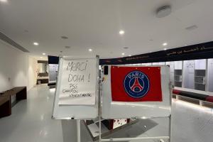 巴黎全隊(duì)還在白板上寫道:“謝謝多哈!來自巴黎圣日耳曼——洲際杯冠軍?!?/p>