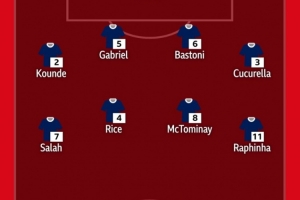 中場(chǎng):薩拉赫(利物浦)、賴(lài)斯(阿森納)、麥克托米奈(那不勒斯)、拉菲尼亞(巴薩)